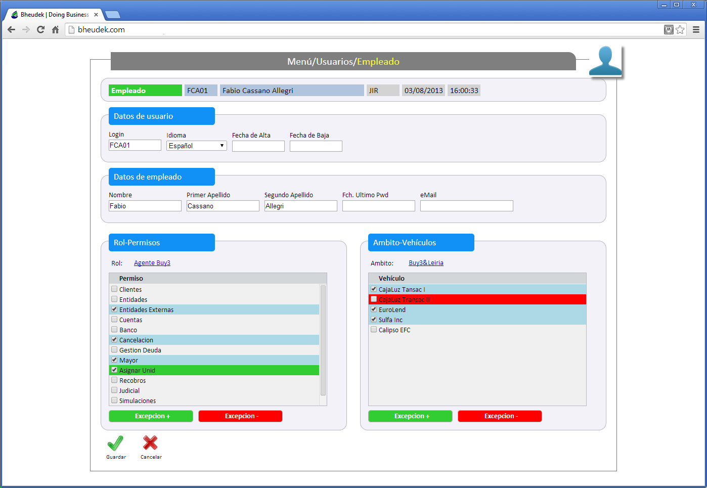 - Gestión de usuarios, roles, permisos y ámbitos.