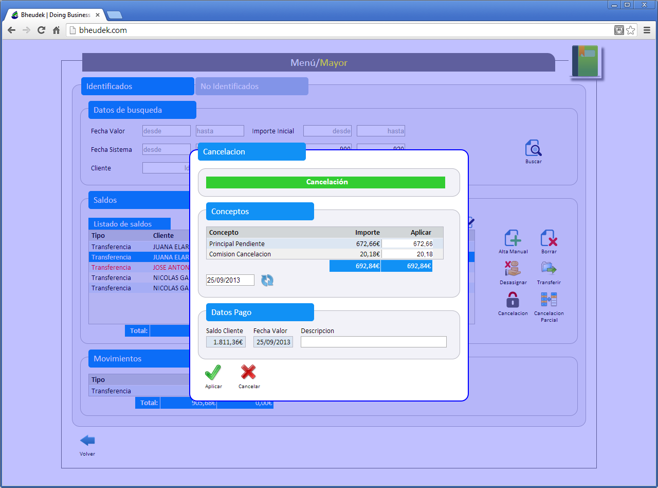 Estanqueidad: Cada cartera se comporta a lo largo de la aplicación como un elemento aislado, sin existir filtraciones de datos o de procesos entre ellas.